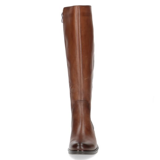 This is a stylish long leather boot from the Caprice Range. It has a sensible block heel for elevation with a sleek leather upper. It has a side zip for ease of getting on and off and the soft stretch back gives flexibility for a slightly wider calf. A great staple for your wardrobe.