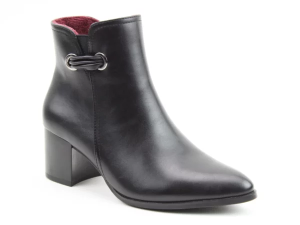 Elevate your seasonal wardrobe with the Heather ankle boot from Heavenly Feet – a timeless silhouette with a modern twist. Designed for Autumn/Winter 2025, this vegan-friendly boot brings sleek style and everyday comfort together effortlessly. Crafted in a soft-touch synthetic upper, Heather features a mid-height block heel and pointed toe for a refined, flattering profile. The decorative trim adds a subtle equestrian-inspired flair, while the plush textile lining and memory-foam footbed ensure comfort that lasts all day. Whether you’re heading to the office or dressing up for the evening, this versatile boot pairs beautifully with everythi