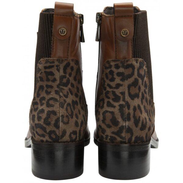 Make a statement with the Lotus Lindley ankle boots, your perfect partner for elevating all your looks. This woman’s tan ankle boot embodies modern design influenced by the Chelsea boot aesthetic with its elasticated side panel. Its contemporary edge is delivered in the form of a striking leopard printed back panel that adds a touch of drama to what is otherwise a classic style. We firmly believe that this almond pointed toe ankle boot with an 3cm block heel will quickly become an indispensable part of your daily style.